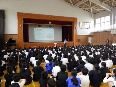 次に生徒指導より、今月の生活目標「あたたかい言葉遣いをしよう」についての話でした。