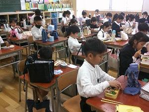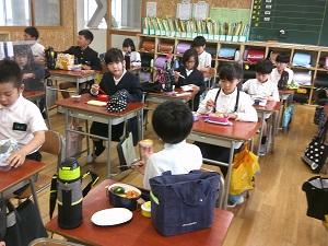 お昼ご飯の時間には、お家の方に作っていただいたお弁当を嬉しそうに食べていました。