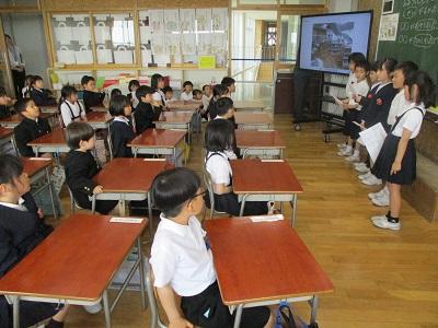 生活科の学習で、2年生が学校のことを紹介しに来てくれました。