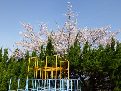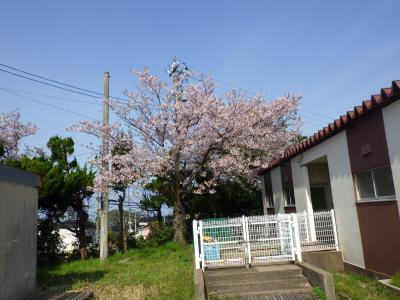 グランド周りの桜が満開を過ぎ、少しずつ散り始めているものもありますが、日当たりの違いで、今、満開の場所もあります。