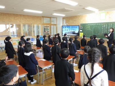 ↓1年生が音楽で、校歌を元気に歌っていました。