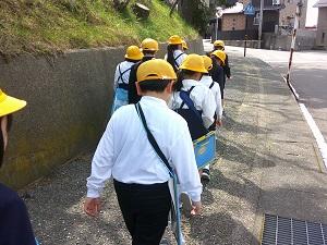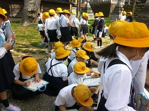 学校のまわりにはどんなものがあるかを見つけながら探検しました。