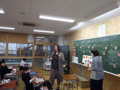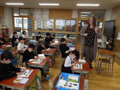 1,2年生がモーリー先生と今年度最後の外国語活動を行いました。