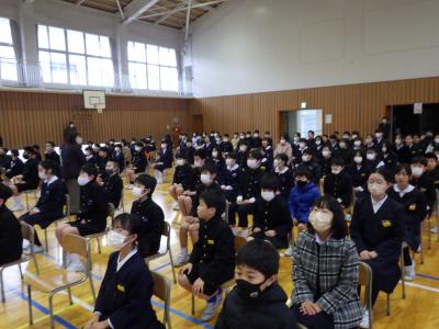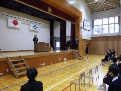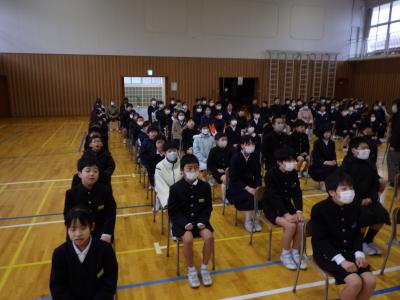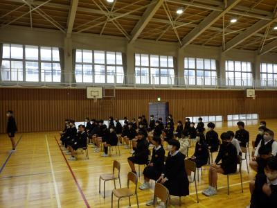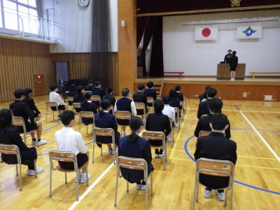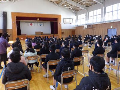 今年度最後の道徳の授業を、多目的ホールで行いました。