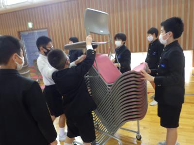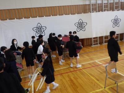 ↓6年生は入学式の後片付けを頑張ってくれました。