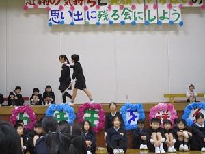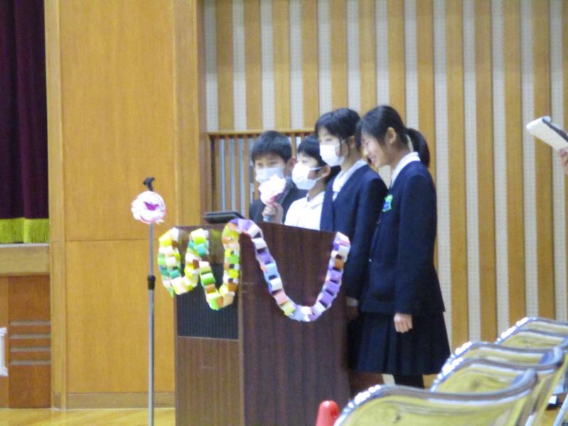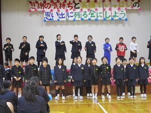 本番はトップバッターとしての緊張感もあったと思いますが、6年生への感謝の気持ちをこめて、声を出したり、演技したりすることができました。総合的な学習の時間に学んだことを思い出してもらえるように工夫し、伝えようとする姿がすてきでした。みんなで歌った歌「すてきな友達」でも、二部合唱や手話にも挑戦し、みんなで一つになって大切なメッセージを伝えることができたと思います。