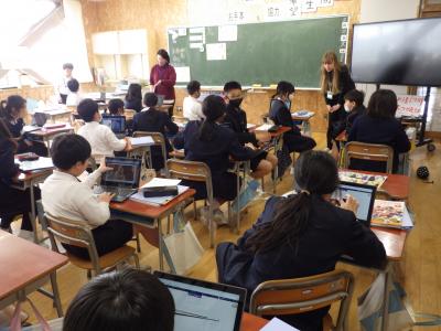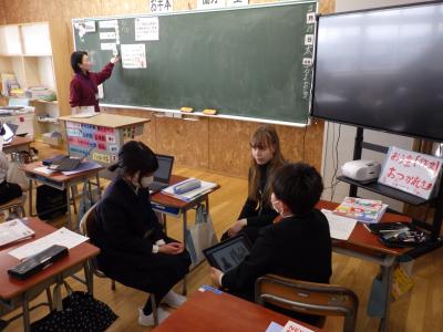 5年生各クラスが、市国際交流員のラーラ先生に「日本の行事を伝えよう」というテーマで授業をしました。