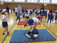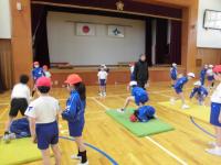 体育の時間に、クラブパレットさんに来ていただき、馬跳びの指導をしてもらいました。