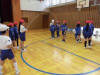 なわとび記録会が行われました。チームのみんなで心を一つにして、跳びました。