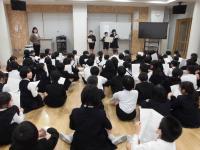 3年生は一ヶ月ぐらい前から毎日歌の練習を頑張り、今日はまた一歩上手になるような歌い方や表情を指導していただきました。