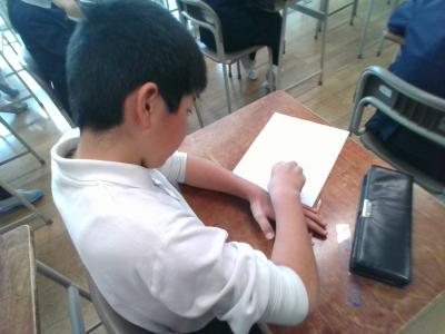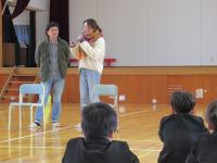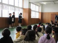 2月13日、図書ボランティアの方々が、6年生にブラックパネルシアターを行ってくださいました。声の強弱、抑揚、感情の入れ方といった読み方の工夫はもちろん、効果音や絵の動き、BGMなど様々な工夫がなされ、臨場感のある読み聞かせでした。パネルシアターをみながら、ボソッと「すごい・・・」と感銘を受ける声が漏れる場面もありました。また、プレゼントとして友達や家族などにメッセージを書ける折り紙の作品もいただき、教室に帰った後すぐに書き込み、休み時間に渡す場面も見られました。卒業生に向けたボランティアの方々の思いが伝わる、とっても素敵な機会となりました。図書ボランティアの皆様、本当にありがとうございました。