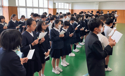 2月の学校集会で歌う予定だったのですが、体調を崩す児童が多かったため、テレビ集会となり歌えなかったためです。
