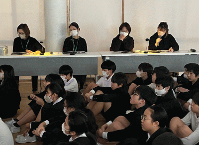 2月2日(金)、河北台中学校にて入学説明会が行われました。今回の説明会では、校舎を見学したり、授業体験をしたりして中学校の雰囲気を感じましたね。体験授業後には、講堂にて中学校の生活全体についてや学習やきまりについての説明を聞きました。中学校生活がより具体的にイメージできたと思います。