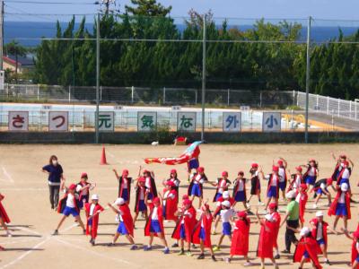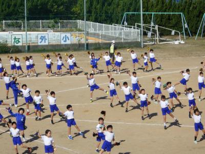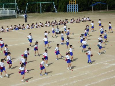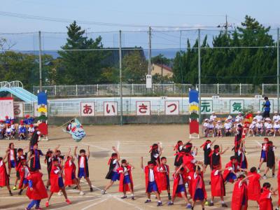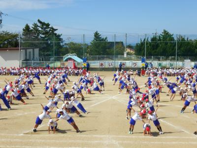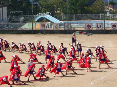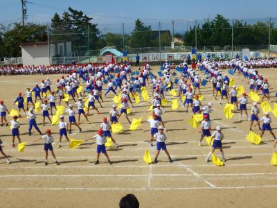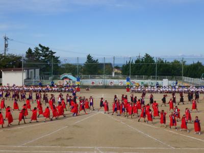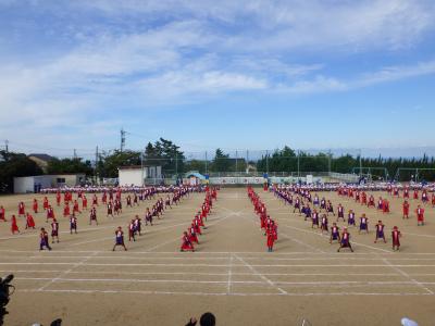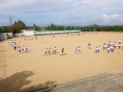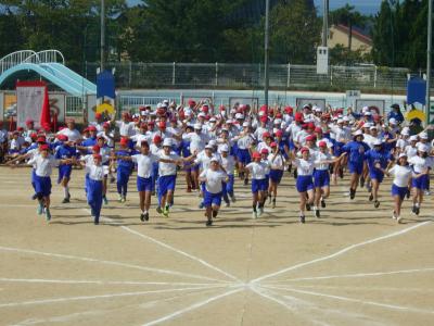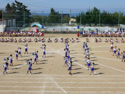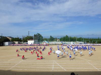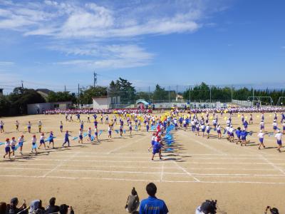 さわやかな秋晴れの下、外日角小学校、秋の大運動会が開催されました。