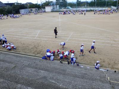 ↓今日は、しらゆり子ども園の園児が低学年の練習を見に来ました。1,2年生は嬉しそうに踊っていました。