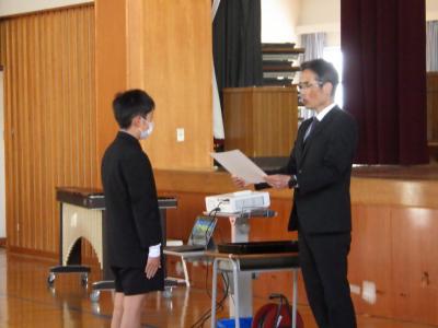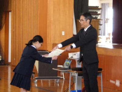 ↓表彰伝達「郡市読書感想文」「調べるコンクール」