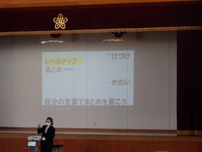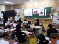 ↓1年2組 国語の研究授業でお客さんや先生方が参観する中、全員がんばっていました。