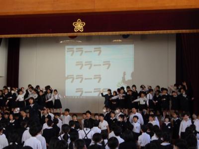 ↓全校合唱「世界に一つだけの花」