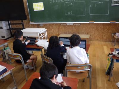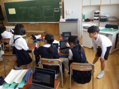 クロームブックを使って友達と協力しながら作成していました。