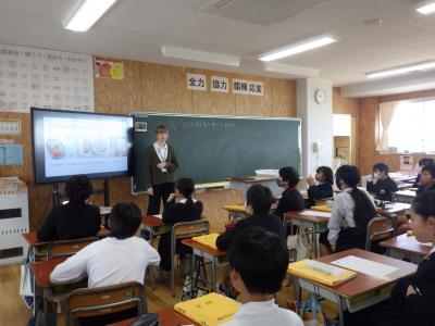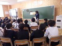↓6年1組 かほく市国際交流員のラーラ先生より、ドイツの学校生活についてのお話を聞きました。