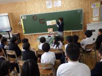 ↓3年2組 読書ボランティア「やまんば」さんの読み聞かせを聞いています。