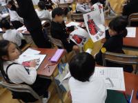2年生が生活科の時間に町探検へ行って、新しく知ったことを発表するための準備をしました。