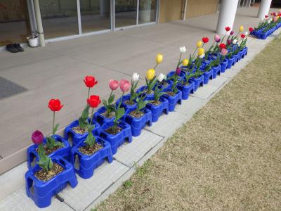 暖かい日が多くなり、中庭のチューリップも色とりどりの花を咲かせています。