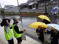 みなさんの安全を守るためにボランティアの方が、交差点で見守ってくれています。