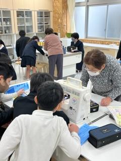 地域からたくさんのボランティアの方が来てくださり、ミシンの使い方を教えてくださいました。