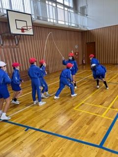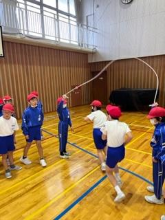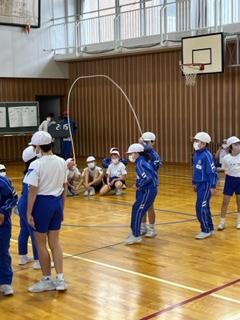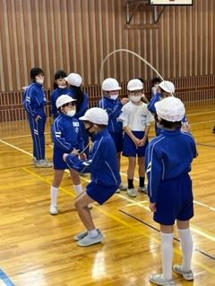 体育の時間では、どの学年も縄跳び運動を頑張っています。