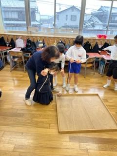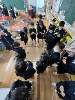 1年生の生活科の時間に、「昔遊び体験」をしました。