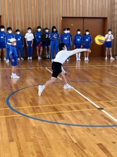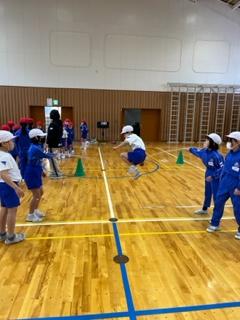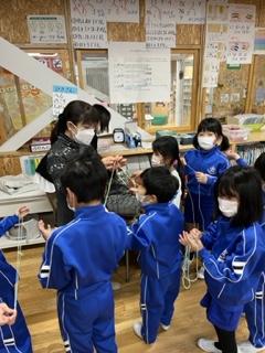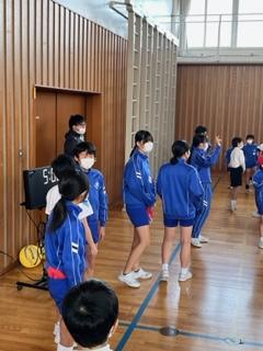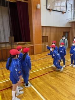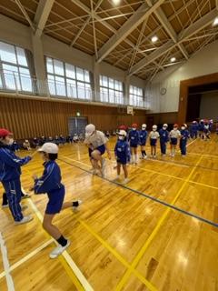 4年生の体育の時間に、3年生が8の字跳びの秘密を学びに来ました。