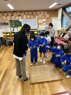 来週は、地域の先生が独楽回しを教えに来てくださるよ。