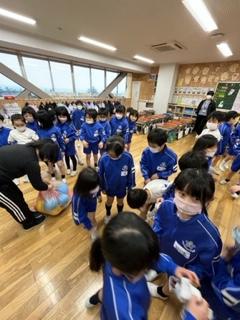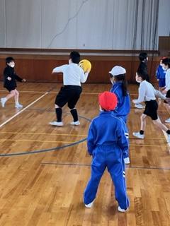 今日は、1・2年生とドッチボールをして楽しみました。