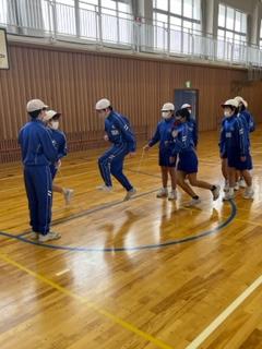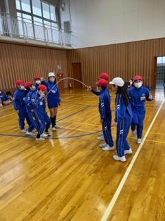 8の字跳びでは、グループで声を掛け合うなどチームワークを大切にしています。