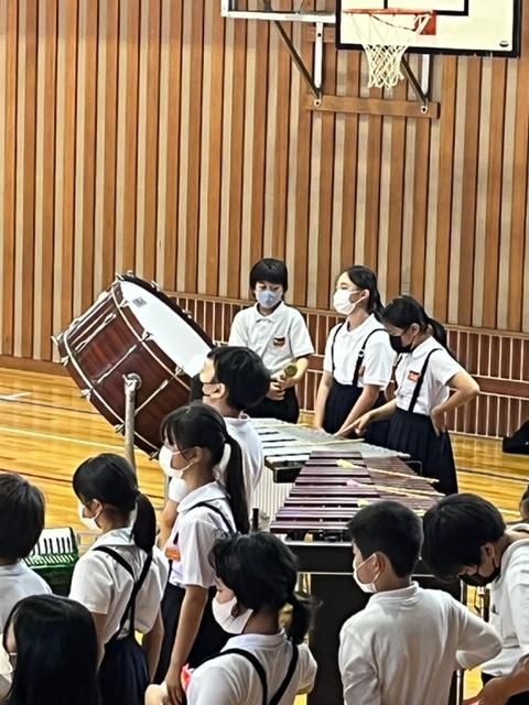 今日の昼休み時間に、体育館で5年生がミニコンサートを開催しました。