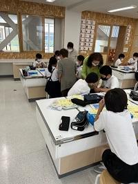5年生が、家庭科で裁縫を学んでいます。