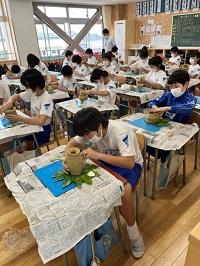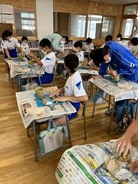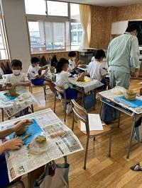 今日は、スポーツ文化課の方が講師となって、6年生が弥生土器づくり体験をしました。