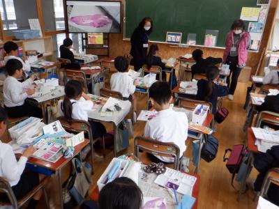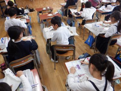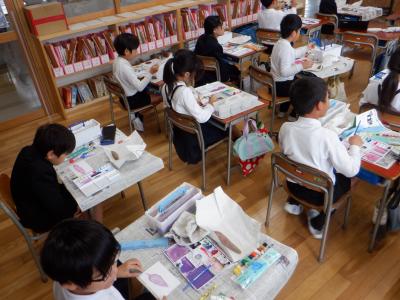 3年生絵手紙教室を各クラスで行いました。