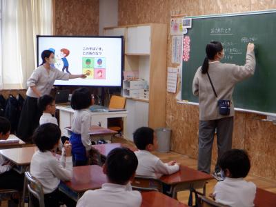 担任と養護教諭が授業を進め、子供達は優しく、しっかりと自分の気持ちを伝える方法を考えていました。