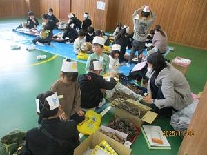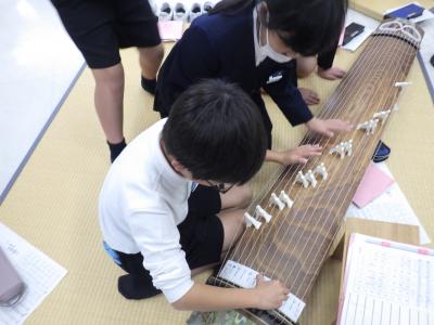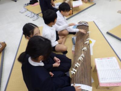 6年1組、5年1・2組、4年3組のお琴教室がありました。