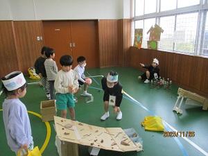 どんぐりころちゃんでは、どちらの手にどんぐりがあるか予想し、盛り上がっていました。
