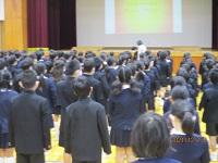 校歌・校長先生の話・全校表彰・生活の話でした。