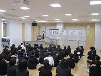 はじめに道徳の題材を通して話し合った後、お話をしていただきました。