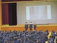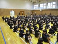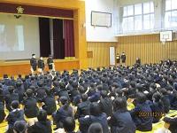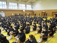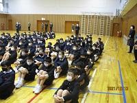 今日は、朝から12月の全校集会を体育館で行いました。