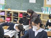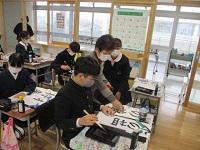 今日の書き方の時間に、地域の先生として3名の方に講師を依頼して、書き初めの支援をしていただきました。