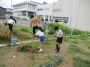 わかば学級のみんなで、雑草などをきれいにとって、畑をきれいにしました。