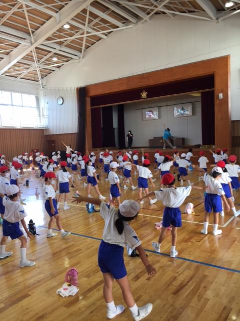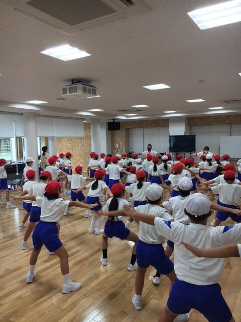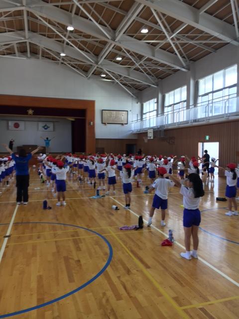 先生や2年生の動きを見ながら、楽しそうに体を動かしていました。