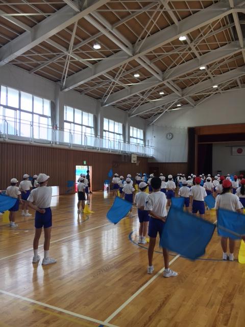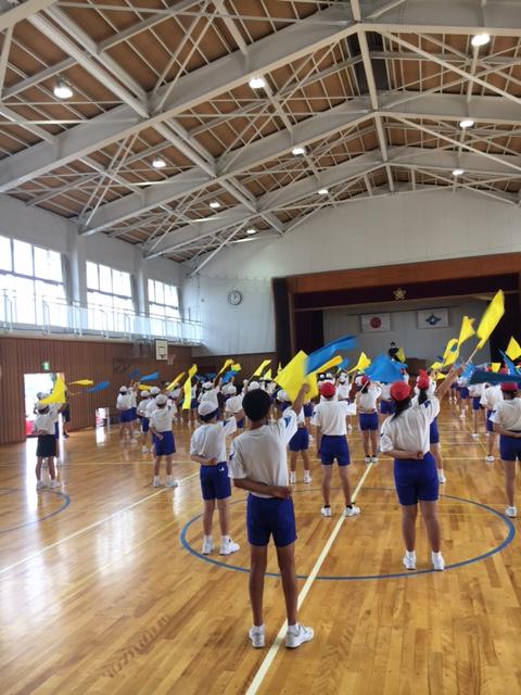 今日は、5年生と6年生がそろって「フラッグ」の練習をしました。
