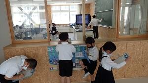 教室以外の場所を探検し、どんなものがあるか?どんな勉強をしているのか?を一生懸命探していました。